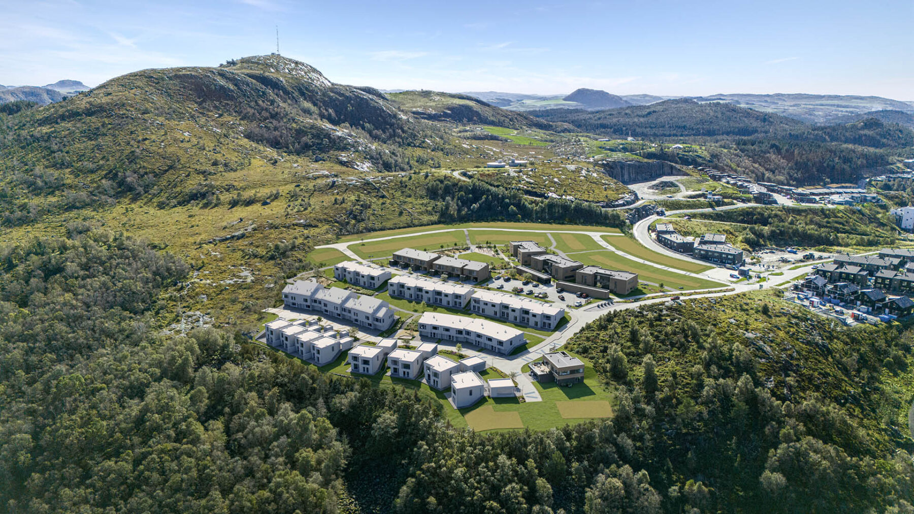 På Vedafjell planlegger vi for en god miks av leiligheter, rekkehus og eneboliger – til sammen 58 boliger i løpet av 2026. Alle boligene er omgitt av fine fellesområder og naturlig boltreplass. Dermed får du et hyggelig nabolag med folk i ulike livssituasjoner, fra par i etableringsfasen, og travle barnefamilier til de godt voksne som gleder seg over enklere dager. Blir fin drøs og gode hverdager av sånt!
